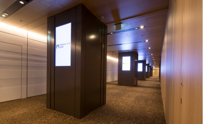 Consisting of the Main Hall, Hall A and Meeting Rooms 1 - 4, this floor offers all the necessary elements for a seminar and reception accommodating up to 700 guests. Up to four concurrent sessions can be conducted by partitioning the space. A number of digital signs capable of displaying moving images are located throughout the floor, optimizing the dramatic impact of your event.