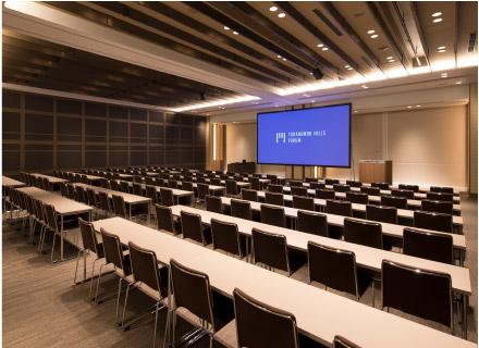 プロジェクター、220インチスクリーン、スポットライト(12台)、DVD/BDプレーヤー、CD/MDプレーヤー、マイク(ワイヤレス4本、ピン2本、有線4本)、ステージ、バトン、椅子(396脚)、机(132台)